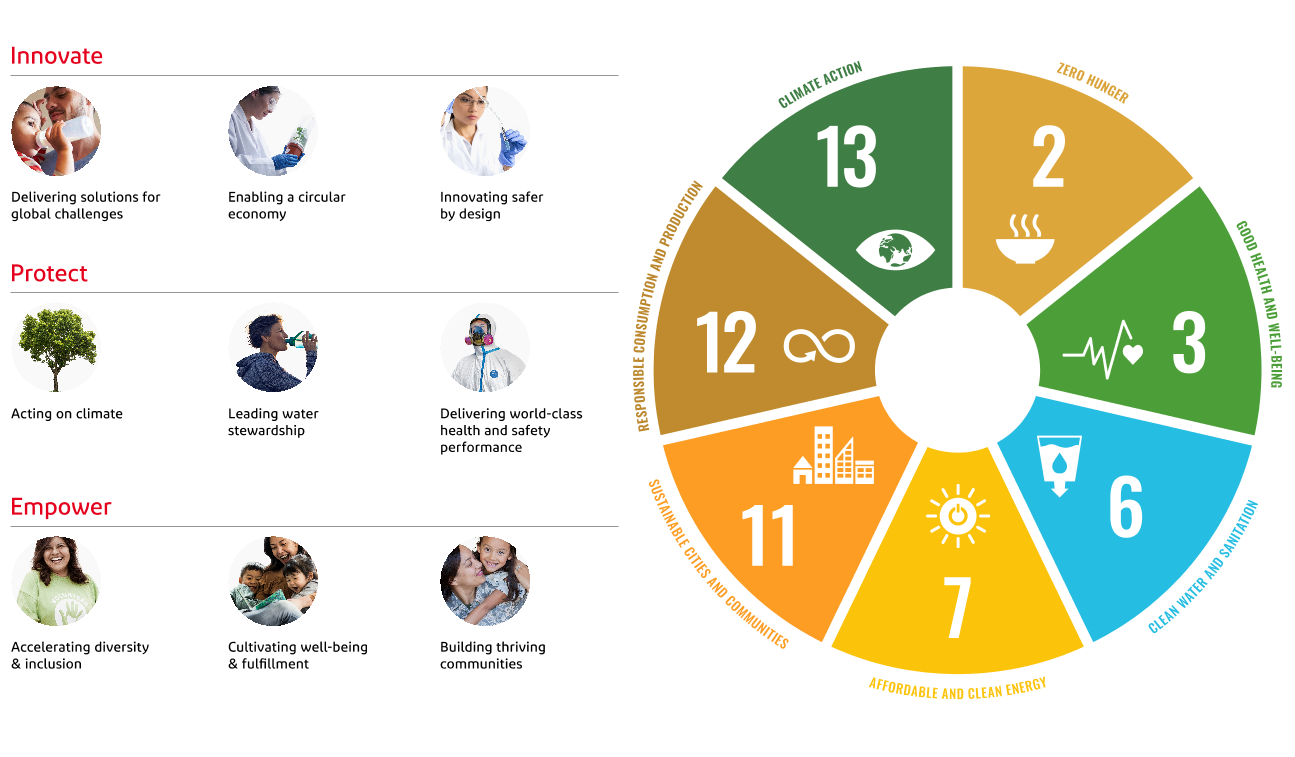 Analyzing stakeholders’ feedback led us to six priority areas—Circular Economy; Climate Change; Health, Safety and Well-being; Product Safety and Transparency; and Water Stewardship. Several of these priority areas, like climate change, circular economy, health and safety, and water stewardship, must be addressed through innovation, operational excellence, and new collaborations with our business partners.