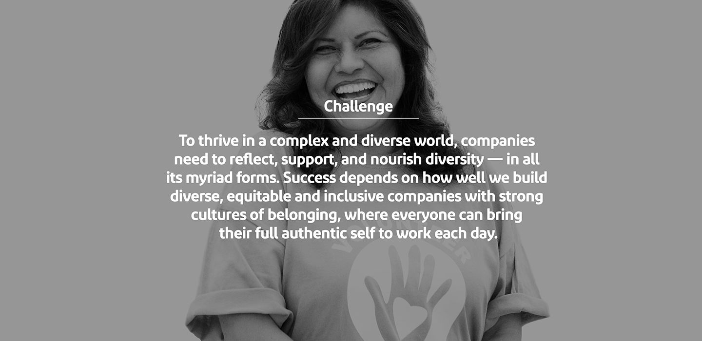 Challenge: To succeed in a complex world and deliver meaningful innovation, companies need to support and enhance all forms of diversity. This includes building strong cultures of equity and inclusion, where everyone can bring their authentic selves to work each day.