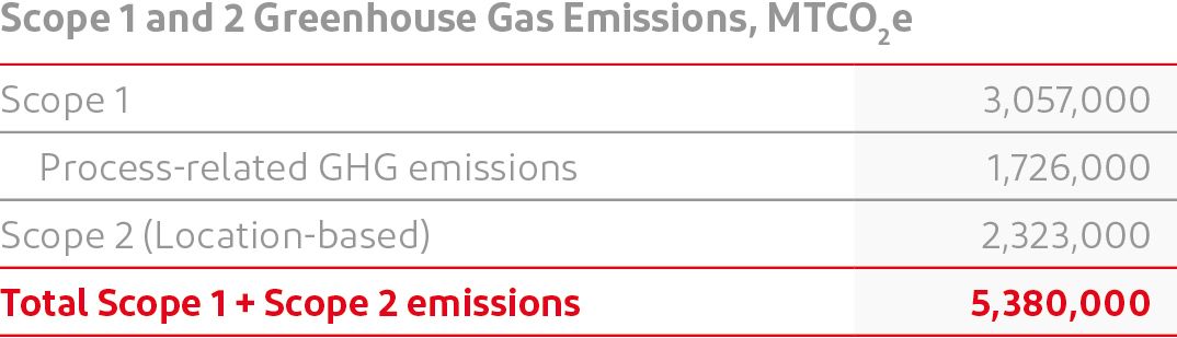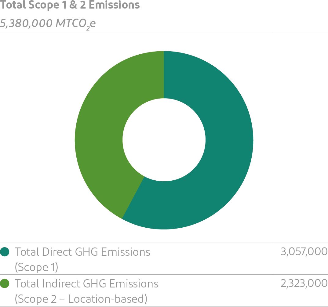 Baseline: 5,380,000 MTCO2e of GHG emissions| 2.9% renewable electricity use