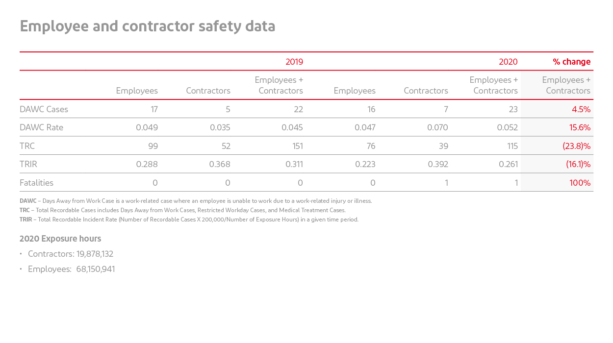 Our commitment to delivering world-class health and safety is embodied in our company culture, our stakeholder engagement, and in the innovations we produce for the world. Above all else, we’re supporting the health and safety of our employees and contractors around the world—and we’re listening to our employees to understand how we can further enhance well-being in our workplaces and beyond.
