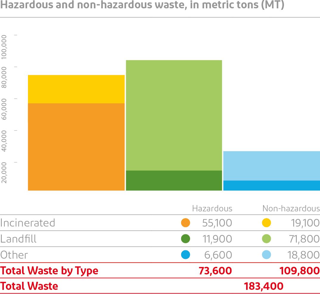 Our waste reduction efforts build on years of continuous improvement driven by the ISO14001 certification process and by other compliance audits, as well as by our own internal standards. For example, the DuPont Waste Management Facility Selection standard defines our practices in relation to the handling and disposal of process-related waste. A corporate working group manages this standard to ensure that it’s in line with all applicable laws for our global sites.
